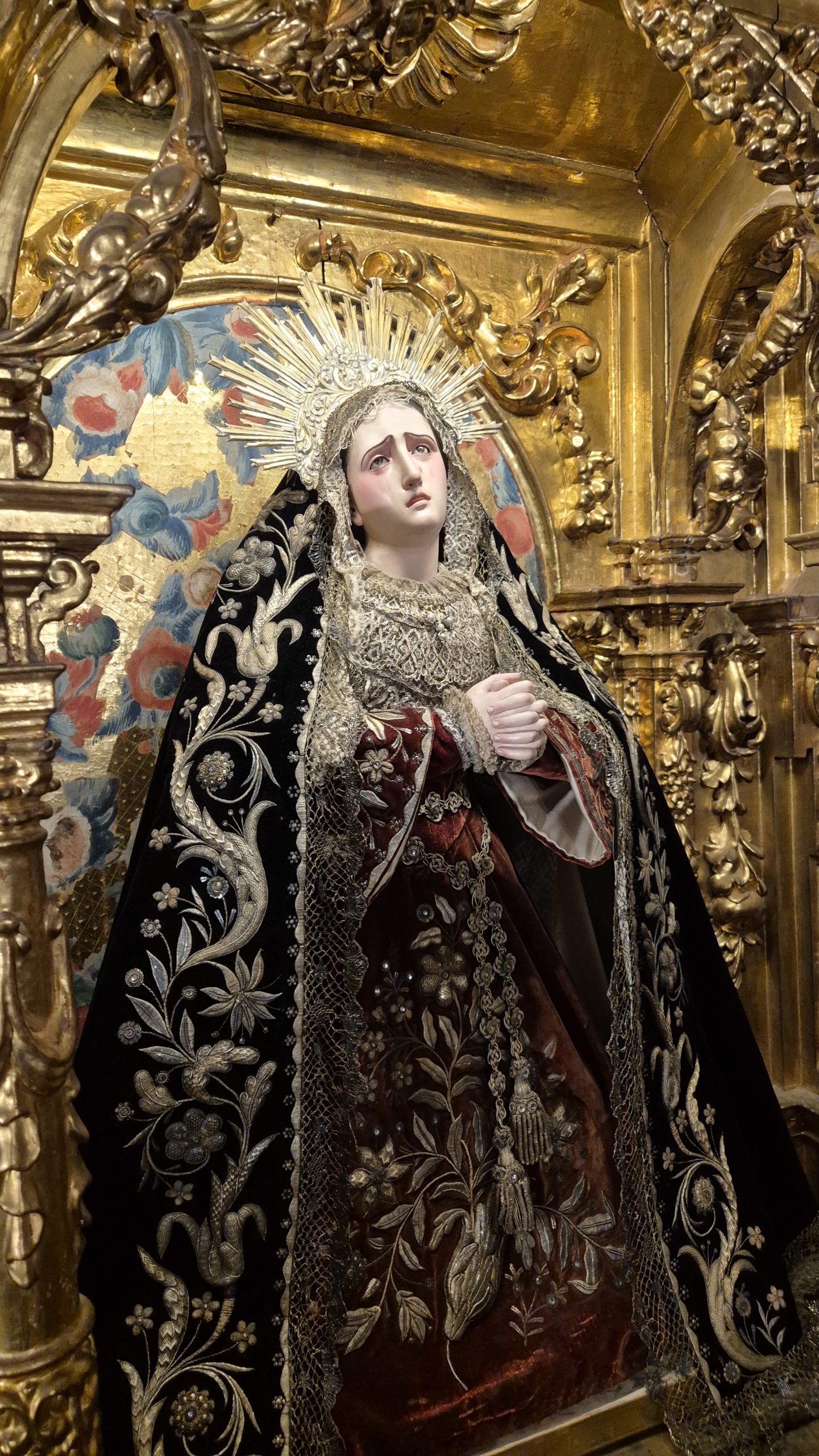 EL CABILDO DE LA CATEDRAL RESTAURA EL VALIOSO CONJUNTO TEXTIL DE LA VIRGEN DOLOROSA DEL CAMARÍN DE LA VIRGEN DE LAS AGUAS DE EL SALVADOR