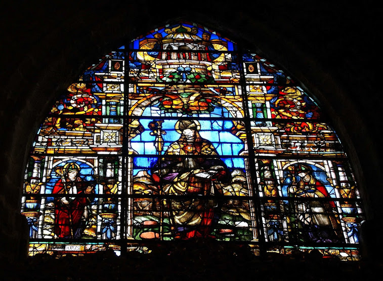 Finalmente mencionaremos las vidrieras dedicadas a San Isidoro, San Laureano y San Leandro, rematando la capilla en vanos en forma de arco apuntado con un rectángulo en la parte inferior, realizadas por Vicente Menardo en 1572.