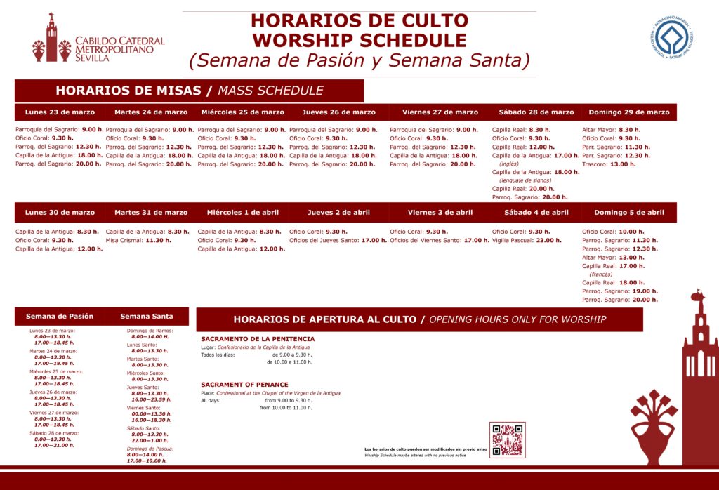 Inicio » Noticias. Catedral de Sevilla » HORARIOS DE CULTO SEMANA DE PASIÓN Y SEMANA SANTA 2026